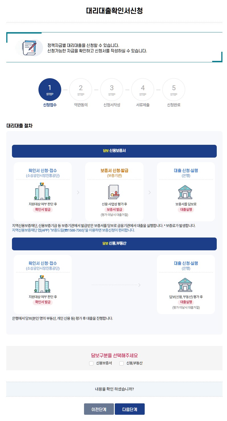 대리대출은 소상공인시장진흥공단(소진공)이 직접 대출을 실행하는 직접대출과 달리, 공단이 지원대상 확인서를 발급하면, 이를 기반으로 금융기관이 대출을 실행하는 방식입니다. 이를 통해 소상공인은 보다 신속하게 자금을 조달할 수 있습니다.