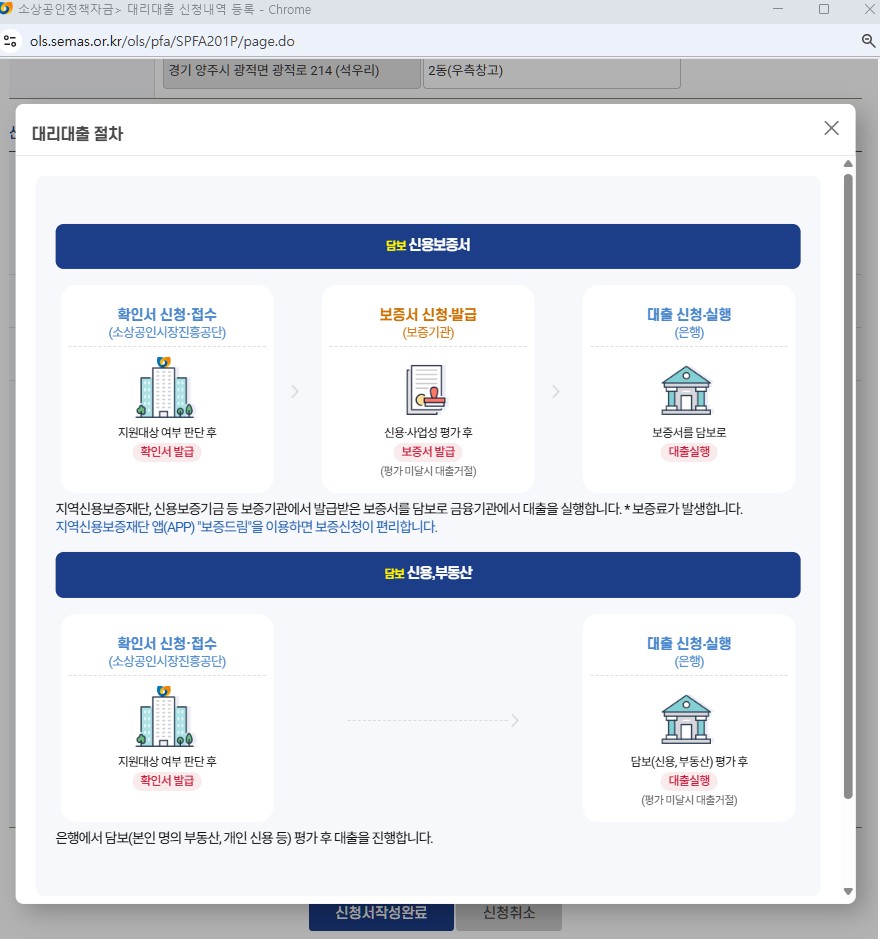 - 제출서류: 보증서, 신용평가서, 담보평가서 등